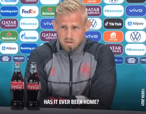 多年来,当英格兰在大赛中表现出色的时候,英国球迷总会高唱歌曲《三狮军团》中的那一句“足球回家了”,但这句话遭到了丹麦门将小舒梅切尔的调侃。