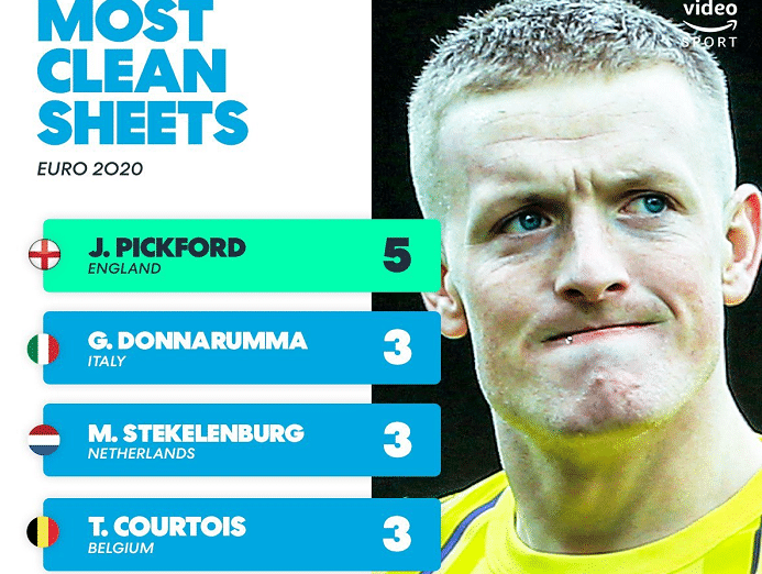 这场比赛多纳鲁马镇守的球门在第79分钟被替补登场的莫拉塔攻破,这样一来,多纳鲁马在哪怕是在决赛也保证常规时间内不丢球,他本届赛事最多能完成4场零封,因此,已经完成5场零封的英格兰门将皮克福德将锁定金手套奖。