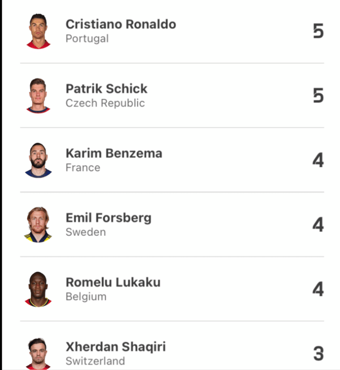 JRS直播网讯 北京时间7月4日,欧洲杯1/4决赛,在捷克与丹麦的比赛中,希克打入一球,本届赛事个人进球数来到5球,和C罗一样。