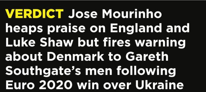 JRS直播网讯北京时间7月4日,欧洲杯1/4决赛,英格兰4-0乌克兰晋级四强。。赛后,talksport解说嘉宾穆里尼奥称评价了英格兰和卢克-肖的表现。