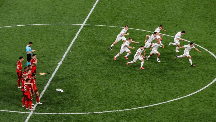 就在西班牙队的比赛结束之后,意大利队以2-1淘汰排名世界第一的比利时队,成功晋级到四强,他们的对手是西班牙队。值得一提是在1994年世界杯中,西班牙队淘汰瑞士队,接下来的对手就是意大利队,不过那场比赛西班牙队以1-2输给意大利队,无缘世界杯四强。