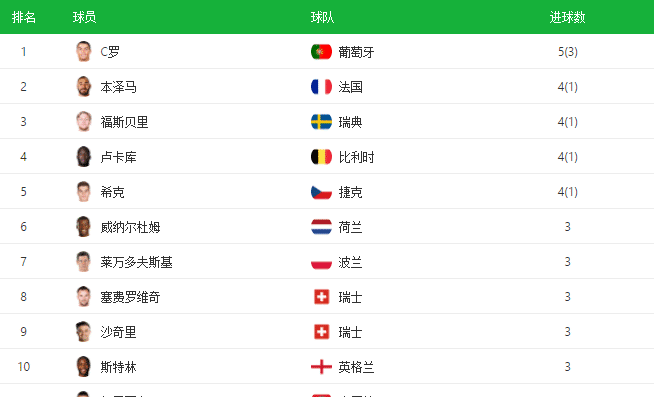 当然C罗的欧洲杯金靴依旧不保险,虽然本泽马和卢卡库出局,但捷克的希克还是有机会的,希克目前打进了4个进球,他接下来的争夺四强资格的对手是丹麦队,所以希克如果延续进球势头的话,他的进球数将会追平甚至超越C罗。