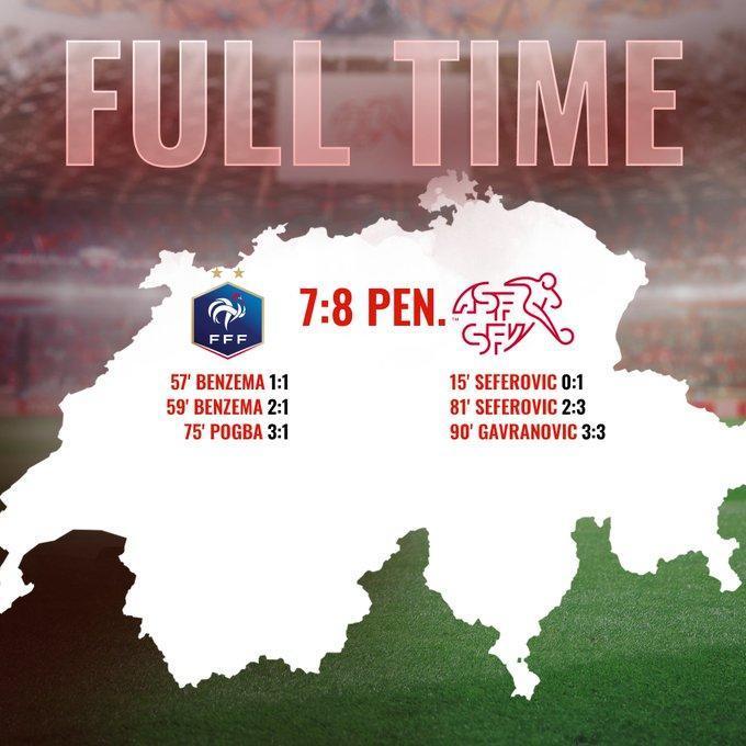 JRS直播网讯 几天前,法国在欧洲杯1/8决赛中遭遇瑞士,上半场塞费罗维奇先拔头筹,下半场洛里扑点,本泽马梅开二度反超比分,博格巴世界波,塞费罗维奇头球梅开二度,加夫拉诺维奇绝平。比赛被拖入加时赛,双方均无建树,点球大战姆巴佩失点,法国总比分7-8爆冷遭到淘汰。