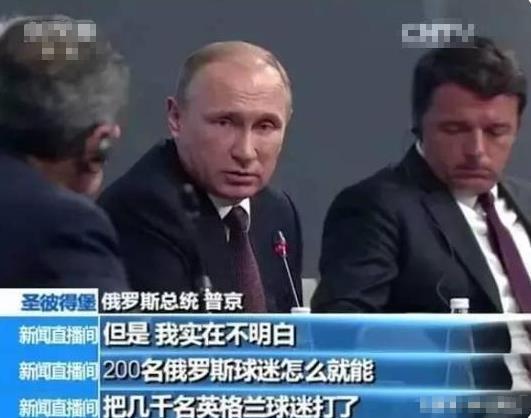 是的,有凝聚力才有战斗力,反之英国球迷就如同一盘散沙,更加让英国球迷扎心的是,当他们的记者去找普大爷讨个说法的时候,普大爷义正言辞的说,打架是不对的,可是200名俄罗斯人为何能暴打几千名英国球迷呢?讲真的,普大爷能够忍住不笑地回答,就已经是对于英国球迷最沉重的补刀了。