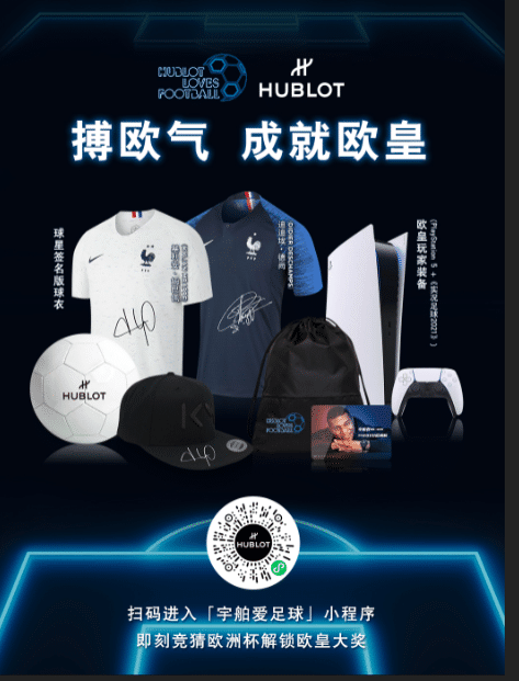 通过宇舶爱足球微信小程序,玩家在活动期间使用当前欧气值参与竞猜预测,参与竞猜并预测成功的玩家,每场可获得所投入欧气值对应“竞猜倍率”欧气值奖励,冲刺欧气榜。欧气榜排行前60名可获得对应奖励领取资格,可兑换相应实物奖励。参与球迷可有机会获得欧皇臻礼,包括签名球衣,HUBLOT宇舶表定制足球,PS5和爱奇艺体育足球会员年卡在内的多项惊喜大奖,引领2020欧洲杯™超级福利!宇舶表还同步推出“融合”主题播客,播客由法国体育广播记者阿内-劳雷·博内特(Anne-Laure Bonnet)倾情主持,呈现对足坛传奇人物及宇舶表品牌好友和品牌大使的精彩访问,内容将聚焦胜利的12个普世价值:团结、和谐、热情、承诺、包容、平等、友谊、公正、尊重、公平竞争、宽容以及分享。宇舶爱足球表情包也将惊喜上线,与球迷朋友燃烧共享2020欧洲杯。