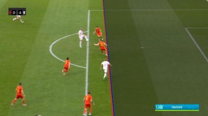 补时阶段,VAR确认布莱斯维特进球是否越位时,贝尔显得十分无奈。