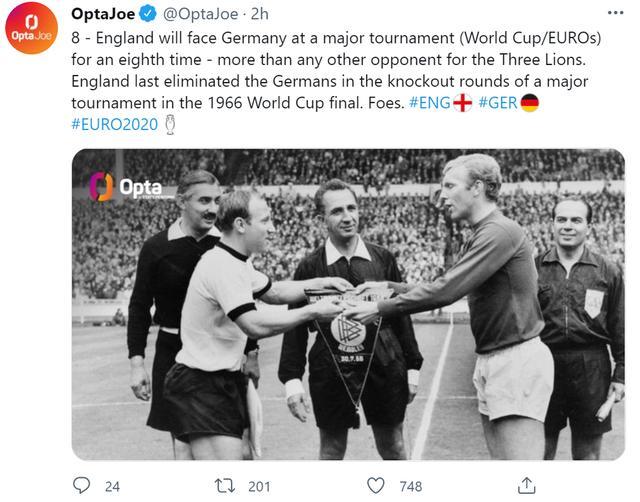 JRS直播网讯 据OPTA数据统计,英格兰将第八次在国际大赛(世界杯、欧洲杯)淘汰赛中遭遇德国,而三狮军团已经有55年未在国际大赛淘汰赛中击败过德意志战车了。