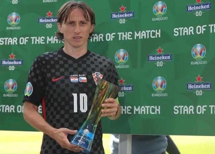 赛后,官方消息,莫德里奇被评为克罗地亚1-1捷克的全场最佳球员。