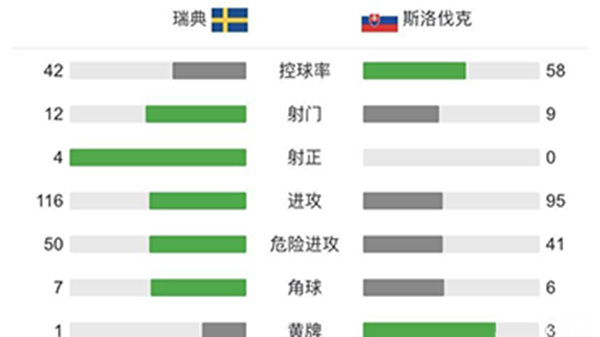 全场比赛结束,瑞典1-0力克斯洛伐克,收获宝贵3分的同时暂时跃居E组榜首。
