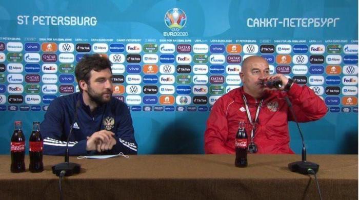 JRS直播网讯昨天晚上,俄罗斯在欧洲杯第二轮小组赛中1-0小胜芬兰,赛后俄罗斯主帅切尔切索夫在发布会上喝起了可乐。