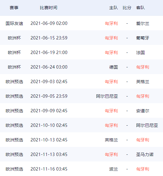 匈牙利队欧洲杯26人球员大名单及赛程一览