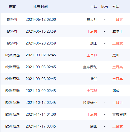 土耳其队欧洲杯26人球员大名单及赛程一览