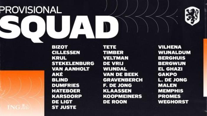 JRS直播网讯北京时间5月14日,荷兰公布34人的欧洲杯集训名单,范戴克无缘,德容领衔,范德贝克入选。