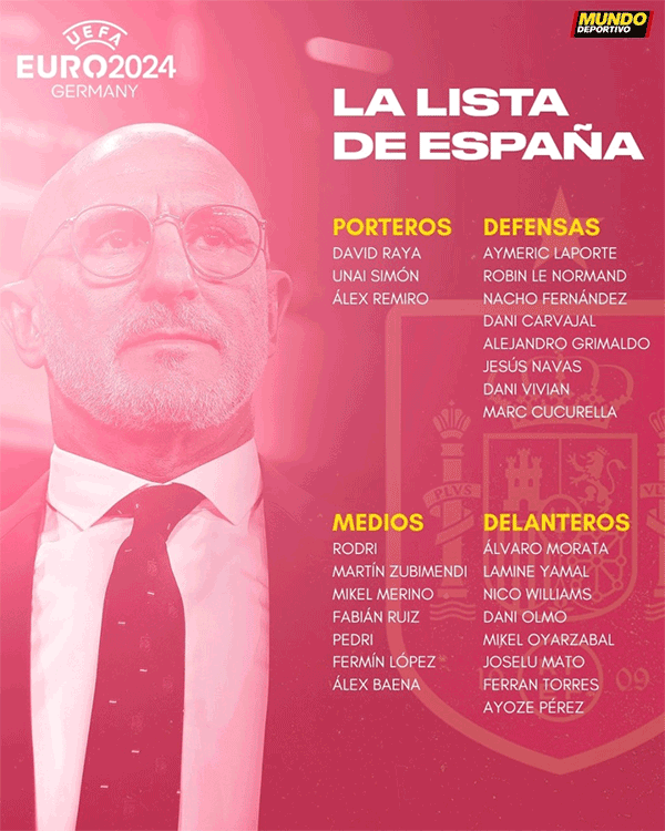 JRS直播网讯 北京时间 6 月 7 日,西班牙男足正式敲定了参加欧洲杯的 26 人最终名单,纳乔、罗德里、卡瓦哈尔、莫拉特等名将均在列。相较于初选名单,巴萨的库巴西、赫罗纳的阿历克斯-加西亚以及马竞的马克斯-略伦特三人,在最后时刻遗憾被裁,无缘本届欧洲杯。