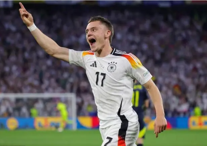 比赛来到第10分钟,维尔茨创造了属于自己的纪录,他成为欧洲杯最年轻进球球员、德国队大赛首秀就斩获大赛进球的球员、历史第二块的单届欧洲杯首个进球。