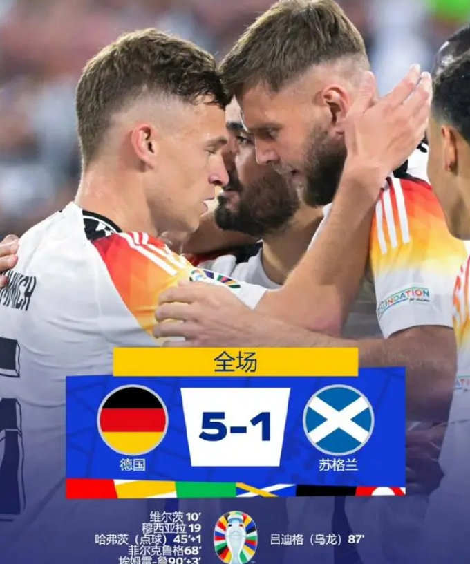 JRS直播网讯 6月15日,万众瞩目的欧洲杯拉开大幕,德国队迎来了和苏格兰的对阵,在两者的实力上,东道主德国队肯定是占优的,可是让球迷没有想到的是这个占优的优势竟然如此的明显。