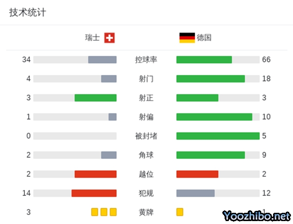 全场比赛结束,德国1-1瑞士。