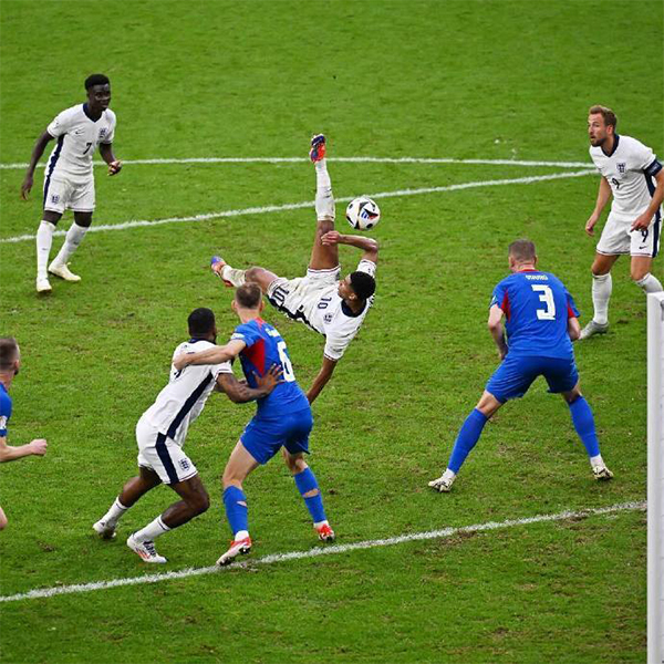 JRS直播网讯 在北京时间7月1日凌晨结束的欧洲杯第4场1/4决赛中,夺冠大热门英格兰通过加时赛鏖战,艰难2-1逆转黑马斯洛伐克,涉险晋级8强。而本场比赛,为英格兰绝平的皇马帝星贝林厄姆,进球后做了一个颇具争议的庆祝动作。