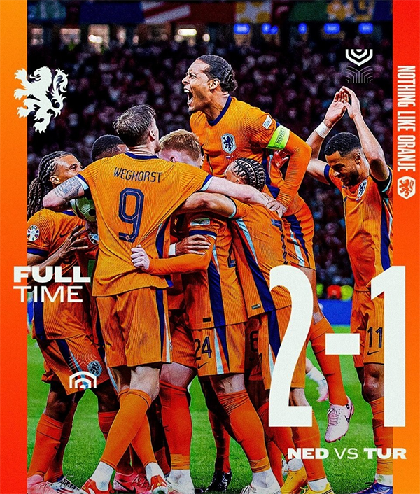 JRS直播网讯 在北京时间7月7日凌晨结束的欧洲杯最后1场1/4决赛中,老牌豪门荷兰2-1惊险逆转大黑马土耳其,晋级半决赛,这也是荷兰时隔20年后再次跻身欧洲杯4强。以小组第3出线的“橙衣军团”,终于没有浪费这次绝佳的签运。