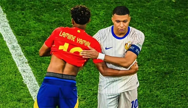JRS直播网讯 北京时间7月10日,第一支晋级欧洲杯决赛的球队诞生,西班牙队2-1逆转击败强大的法国,晋级决赛,接下来的对手是荷兰VS英格兰队之间的胜者。比赛结束之后,两队球员、教练形成鲜明对比,西班牙队的球员们在疯狂庆祝,镜头的焦点是以16岁362天的年龄成为欧洲杯最年轻进球球员的亚马尔。德尚坐在椅子上,脸色铁青,他战略性喝水,格列兹曼和亚马尔致意,镜头给到本场比赛送上助攻的姆巴佩,他也去到场边喝水,这场半决赛,姆巴佩也拼尽全力。