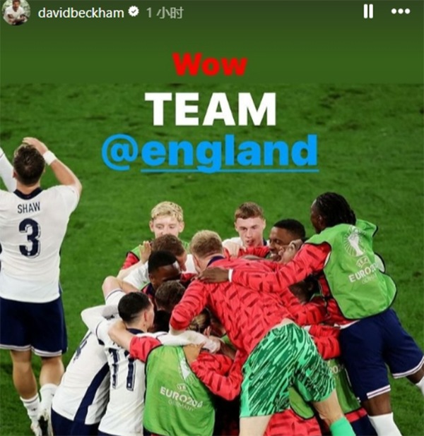 贝克汉姆在社交媒体上晒出照片,庆祝英格兰绝杀,称:哇哦!英格兰队!