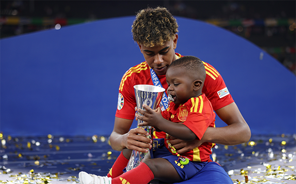 JRS直播网讯 北京时间7月15日,欧洲杯决赛结束争夺,最终西班牙队2比1击败英格兰,以7战全胜的战绩破纪录夺冠,加冕欧洲杯4冠王,夺冠次数最多。赛后的颁奖仪式,1球4助攻的亚马尔拿下最佳新人和助攻王、罗德里斩获欧洲杯MVP,奥尔莫等人获得欧洲杯金靴奖。英格兰队非常遗憾,欧洲杯的赛场上连续获得亚军,凯恩13年的职业生涯,依旧零冠。