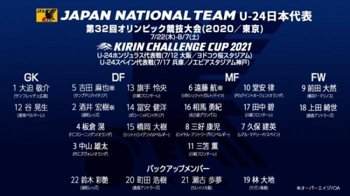 JRS直播网讯 今天,日本公布了奥运会大名单,久保建英、堂安律领衔,共有9名留洋球员入选。