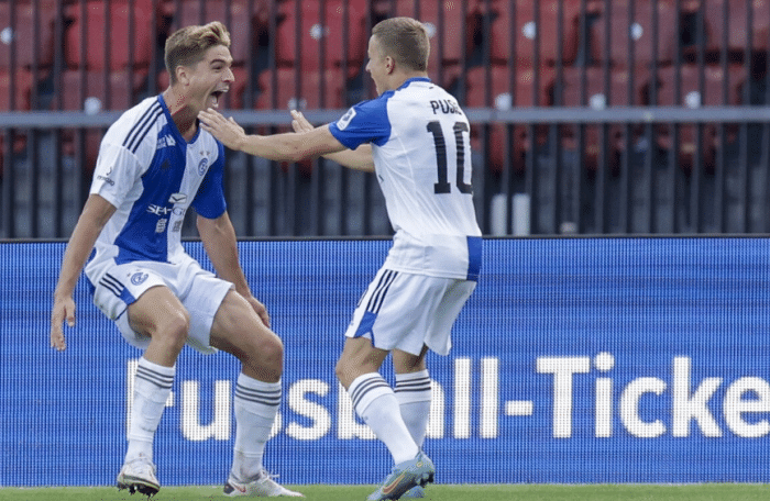 轮换阵容的默契和整体实力都有所欠缺,上半场无缘改写比分,与戈尔德施特恩互交白卷,以0-0结束上半场。比赛下半场,留洋国脚李磊又登场了,他与川边骏、德姆哈萨伊等人轮番替补登场。草蜢很快踢出了流畅的进攻,比赛第56分钟,普希奇破门;比赛第65分钟,替补登场的德姆哈萨伊破门;比赛第80分钟,替补登场的布拉苏奇破门,草蜢顺利3-0击败了对手。