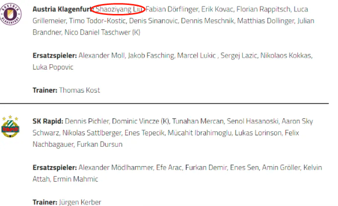 JRS直播网04月03日讯 奥地利当地时间昨天进行的一场U18联赛中,克拉根福U18以1-7的比分大败给维也纳快速U18,刘邵子阳首发出场并打满全场。