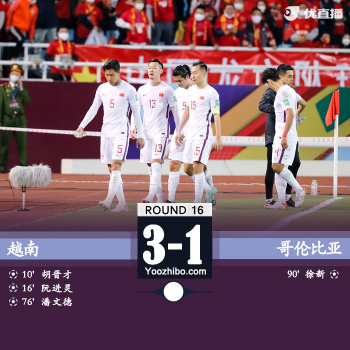 JRS直播网2月1日讯 北京时间2月1日晚20:00,世预赛亚洲区B组第8轮比赛打响,国足对阵越南。上半场,胡晋才、阮进灵先后破门,国足两球落后;下半场,潘文德世界波杀死比赛,补时阶段,徐新打进挽回颜面的一球。最终,国足1-3不敌越南,8战后仅积5分,彻底无缘世界杯正赛,最后两场世预赛将对阵沙特和阿曼。