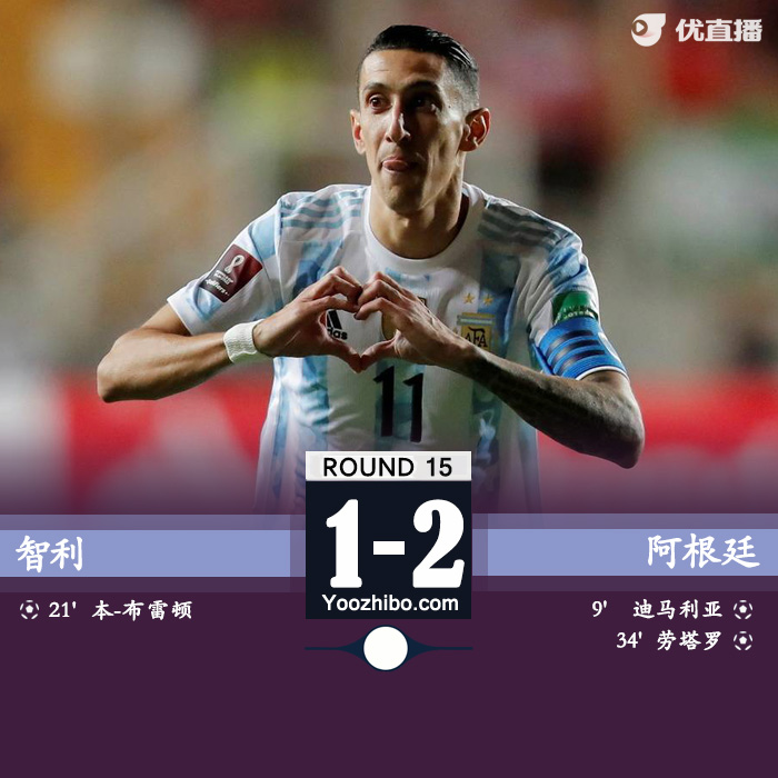 JRS直播网1月28日讯 北京时间1月28日早晨8时15分,2022世界杯南美区预选赛第15轮展开角逐,阿根廷做客对阵智利。上半场,迪马利亚世界波远射破门首开纪录,布里尔顿-迪亚兹扳平比分,随后劳塔罗破门。阿根廷半场2-1领先智利。下半场双方均无建树,最终阿根廷客场2-1击败智利。此役战罢,阿根廷在本次世预赛9胜5平保持不败,继续排名南美区第二位。