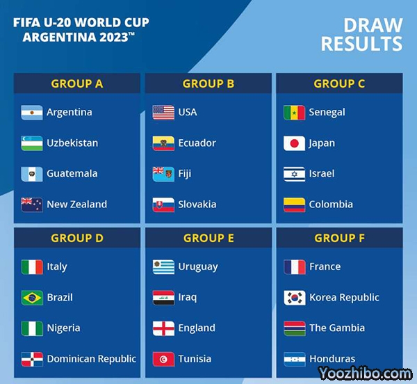 JRS直播网讯 北京时间4月22日,2023U20世界杯小组赛分组出炉,东道主阿根廷与乌兹别克斯坦同组,意大利与巴西同组,法国与韩国同组。 阿根廷原本无缘本届世青赛,但由于原主办国印尼被取消资格,阿根廷获得主办权,他们以东道主身份参加本届赛事。本届U20世界杯将在5月20日-6月11日举行。