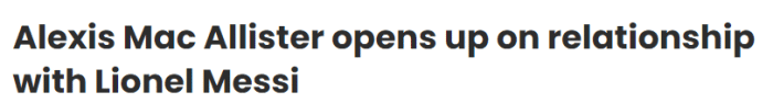 去年12月,梅西以队长的身份带领阿根廷队夺得了世界杯的冠军,麦卡利斯特正是阿根廷队的主力中场之一,他在决赛中还助攻迪马利亚破门。