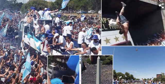 JRS直播网12月22日讯 阿根廷队时隔36年再度夺得世界杯,全国上下沸腾,阿根廷队回国的当天,全国放假一天,我们也就看到了在游行庆祝的时候,有多达500万球迷参与进来,甚至因为有球迷爬的高摔下来,导致受伤,据悉还有1人死亡,引发悲剧。后期因为组织秩序的混乱和球迷太多,所以阿根廷队的游行的大巴车没有前往方尖碑附近,全队大巴车游行变成了三架直升机飞行,在上空绕了几周之后离开,匆匆结束夺冠庆典。