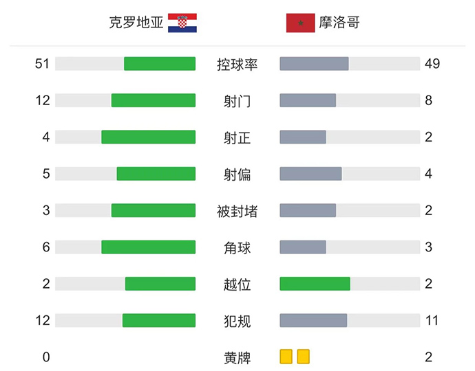 全场比赛结束,最终克罗地亚2-1击败摩洛哥。