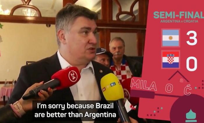 JRS直播网讯12月16日世界杯半决赛,克罗地亚0-3不敌阿根廷,无缘决赛,克罗地亚总统米拉诺维奇表示巴西更优秀,阿根廷得到了三个虚构的点球。