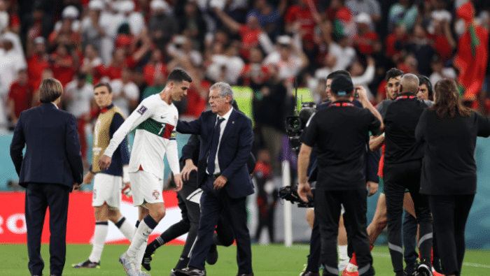 对于C罗来说,这是一届令人非常失望的世界杯,他所在的葡萄牙队最终成绩定格在八强,被大黑马摩洛哥队淘汰出局。个人层面C罗在小组赛三场比赛都是首发的状态,也在第一场就取得了进球,实现连续五届世界杯进球,历史第一人。可惜进入到淘汰赛之后,C罗从首发彻底沦为替补,被表现出色的拉莫斯压在替补席上。同时C罗虽然连续连场替补上场,但依旧无缘取得世界杯淘汰赛的进球,没有能够打破魔咒就被淘汰出局。
