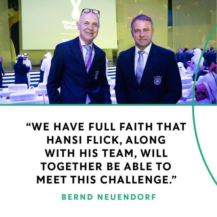 此前德国足协已宣布德国队领队比埃尔霍夫下课,但现在弗里克证实留任,这位前拜仁慕尼黑主帅说道:“我和我的团队对本土举办的2024欧洲杯感到乐观。作为一个团队,我们可以取得比在卡塔尔好得多的成绩。我们将从这届世界杯吸取教训,我对于与(德国足协主席)诺恩多夫和(德国足协副主席)瓦茨克并肩同行充满信心,我们希望所有德国人团结起来,在2024本土欧洲杯上再次支持国家队。”