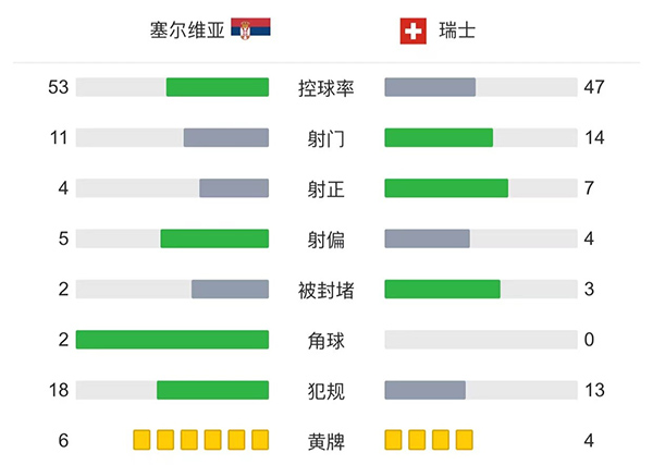 全场比赛结束,最终瑞士3-2塞尔维亚。