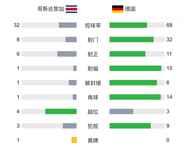 全场比赛结束,最终德国4-2哥斯达黎加。