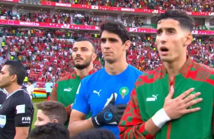 JRS直播网11月28日昨夜,摩洛哥在世界杯中2-0战胜比利时,比赛开始前,摩洛哥门将布努在唱国歌时还在场上,但随后合影时他已被换下。
