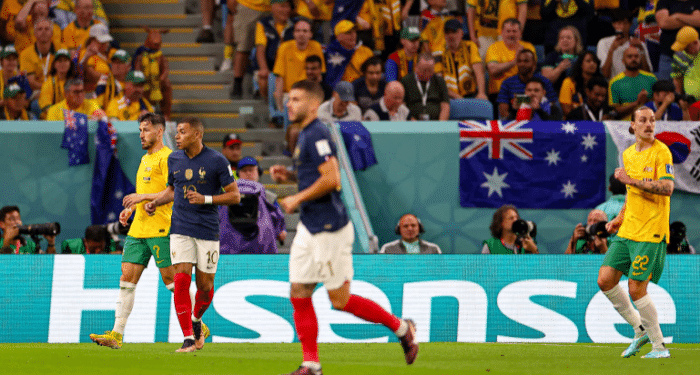 JRS直播网11月23日杯小组赛首轮,卫冕冠军法国队以4-1逆转击败澳大利亚,迎来开门红。这场比赛踢得一波三折,开场仅仅9分钟,澳大利亚队就取得了进球,古德温首开纪录,而法国队的主力卢卡斯伤退,比赛悬念陡增。之后拉比奥特传射拯救球队,中锋吉鲁反超比分。下半场领先的法国队踢得游刃有余,姆巴佩上演传射的好戏,吉鲁完成梅开二度,这样法国队以4-1击败澳大利亚队,取得世界杯开门红。