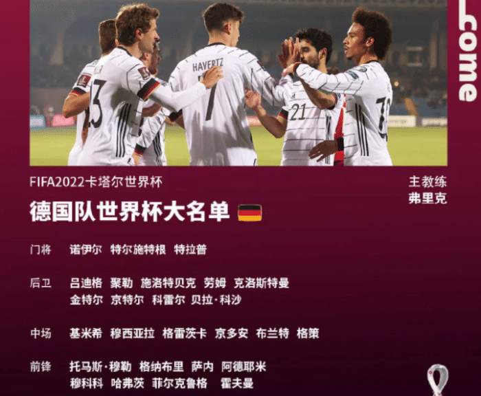 德国队由主帅弗里克指挥,他的目标就是率领德意志战车在世界杯赛场上崛起,经历2018年俄罗斯世界杯的低迷之后,德国队全队的欲望都很足,但他们也遇到了伤病的考验。世界杯出征之前,罗伊斯等人就因伤无缘名单。到了卡塔尔之后,萨内因为膝盖的原因不仅缺席训练,对阵日本队的比赛,这位主力进攻球员也已经确定会缺阵,这对于德国队来说是有很大的影响。