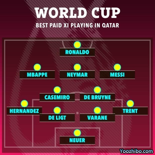JRS直播网11月19日《太阳报》今日统计了世界杯参赛球员最高周薪阵容,姆巴佩160万英镑周薪领衔。