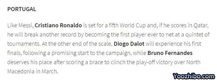 曼联官网写道:“像梅西一样,C罗也将第五次参加世界杯,如果他在本届赛事进球,他将打破另一项纪录,成为有史以来第一位在五届世界杯中进球的球员。此外,达洛特将经历他的首次世界杯之旅,达洛特本赛季的开局不错,而布鲁诺-费尔南德斯在3月份的附加赛中梅开二度帮助球队战胜北马其顿,也理所当然地获得了他在国家队的位置。”
