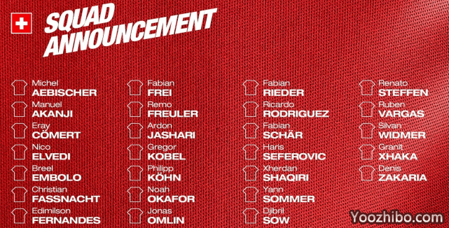 附:瑞士男足最终26人名单
