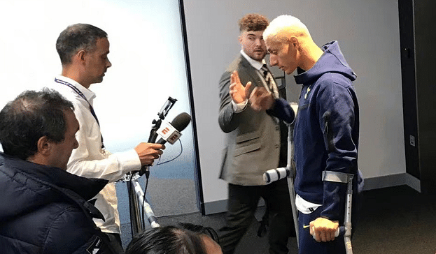 英超第10轮,热刺以2-0击败埃弗顿的比赛中,对阵旧主的理查利森在下半场伤退,赛后他拄着拐离开球场,孔蒂表示理查利森是小腿不适,明天会接受进一步的检查。理查利森本人在接受采访的时候动情流泪,他直言自己很有可能赶不上世界杯,希望尽快痊愈。