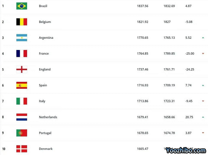 6场5连胜+4次制造惨案,使得巴西在FIFA的排名也变得稳固,北京时间6月23日,FIFA公布了最新一期的世界排名,巴西又是世界第一,这是他们连续两期FIFA排名达到第一,挤掉了之前长期排名FIFA第一的球队比利时。比利时最近10年凭借阿扎尔、德布劳内、卢卡库等人领衔的黄金一代,屡屡占据世界第1的宝座,可惜缺乏豪门底蕴,2022年世界杯可能是阿扎尔等人最后一次扛着比利时冲击世界杯冠军奖杯。