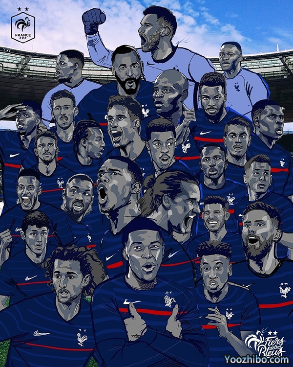 前锋:本-耶德尔(摩纳哥)、本泽马(皇马)、科曼(拜仁)、奥斯曼-登贝莱(巴萨)、吉鲁(切尔西)、格列兹曼(巴萨)、姆巴佩(巴黎)、马库斯-图拉姆(门兴)