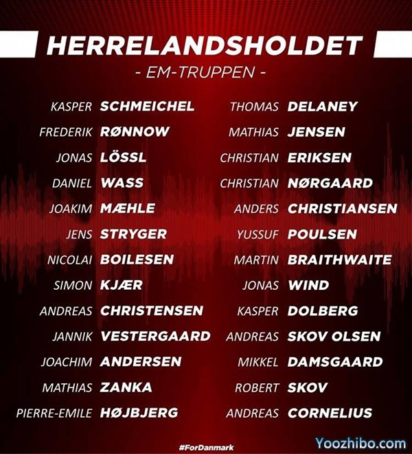 JRS直播网讯丹麦国家队成立於1889年,是一支在1980年代快速崛起的国家足球队,非常擅长控球,而且破僵能力不错的二流偏上球队,而且球队阵容年轻,核心球员年轻且经验也丰富。在这里你可以了解球队的最新阵容名单以及历史战绩。